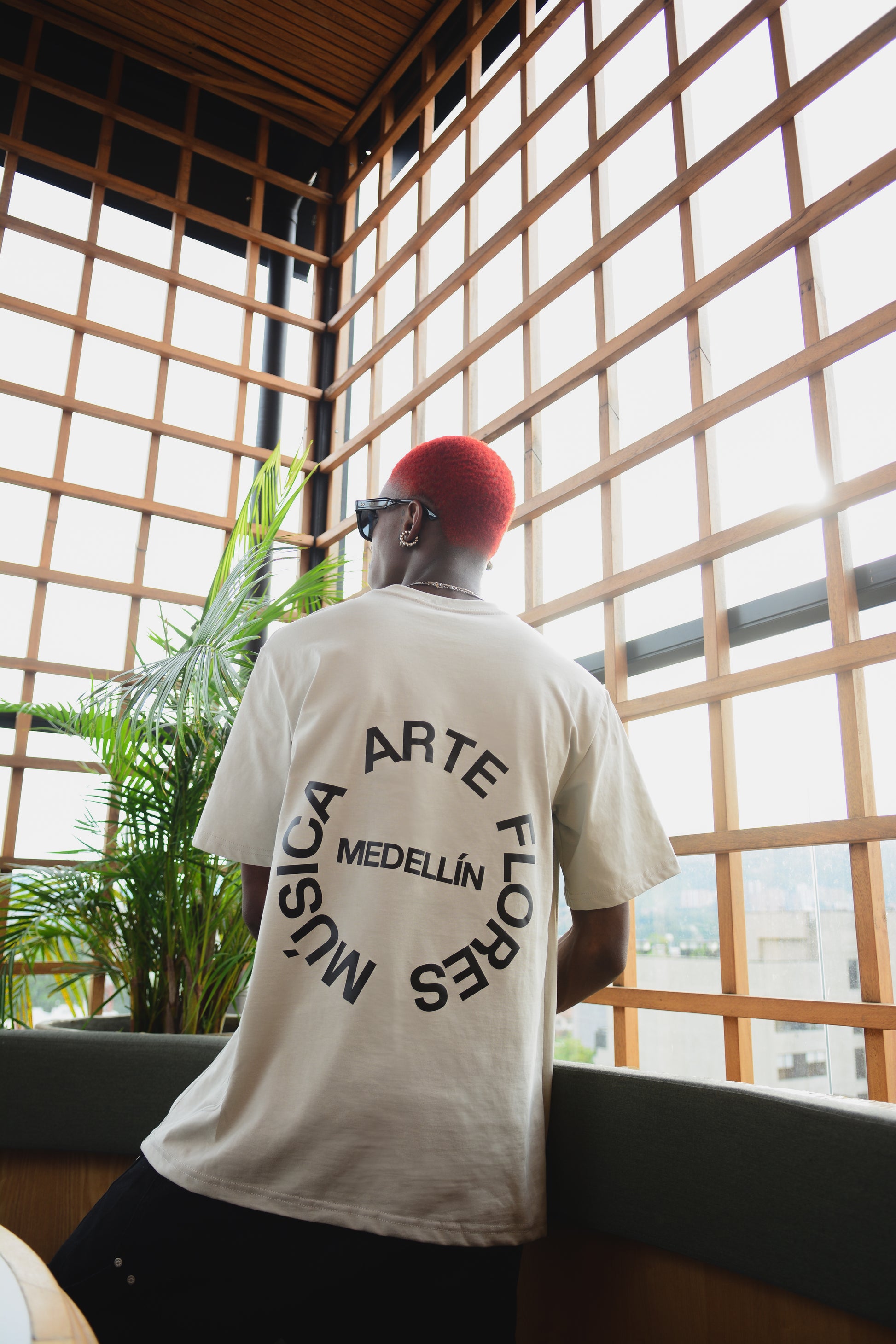 Camiseta unisex en 100% algodón colombiano de 220 gramos, en color gris . En la parte trasera lleva un diseño gráfico con las palabras “Música”, “Arte”, “Flores” y “Medellín” dispuestas en un círculo, resaltando elementos representativos de la ciudad. Ideal para un estilo casual y cómodo, con un tejido suave y resistente.